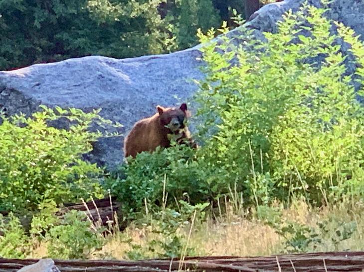 こんな所で犬の散歩?と思ったらコヨーテが歩いてたり、鹿さんが横断歩道を渡ってハイカーに拍手をもらったり、動く岩だと思ったら熊さんだったり、登山用ロープが動いてると思ったら蛇、リスは普通に見かけ、早朝の小鳥のさえずりは例年以上だったりと今シーズンはとにかく野生動物遭遇率が高いです。熊の子供が草地でヒョッコリ顔を出して目があって思わず近寄って記念写真!撮りたくなるんですよ、私もそうでしたから…