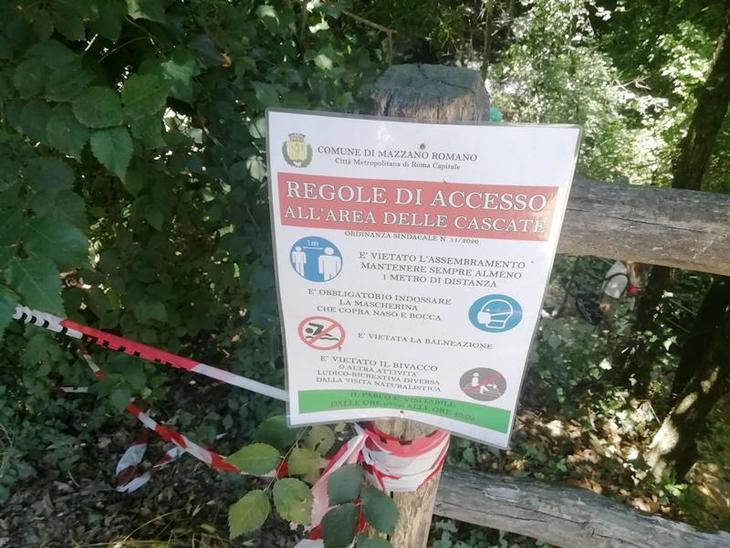 標高1053mのシミーニ山(伊語:Monte Cimini)から清らかな水が流れるトレジャ川(伊語:Treja)とこのモンテ・ジェラートの滝の周辺では、今の季節だと通常、遊泳ができるのですが、新型コロナウイルスの影響により遊泳禁止となっていました。なお、このトレジャ川もローマの町を流れるテヴェレ川(伊語:Fiume Tevere)の支流のひとつとなっています。
