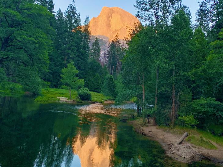 公園内の宿泊出来た場合の特権は、朝昼夕夜までの景色が堪能出来る事ですね。スインギングブリッジ(Swinging Bridge)でバーベキューエリアがありますので、場所取り頑張ってみてください。日没少し前にセンチネルブリッジ(Sentinel Bridge)に行ってハーフドームがオレンジ色になるのを観察してみましょう。