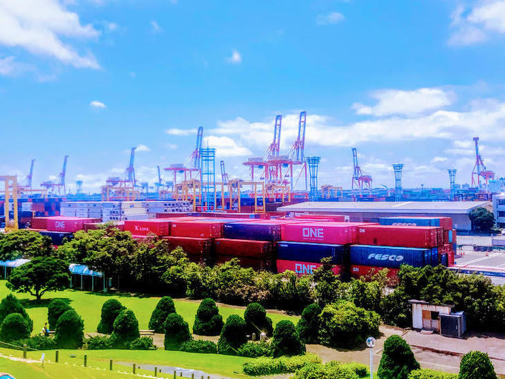 まわりにはカラフルなコンテナやキリンのようなクレーンが。
