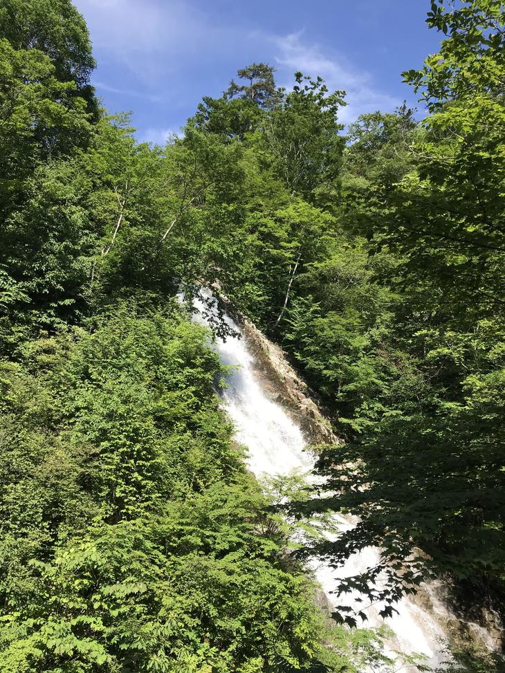滝の近くに行くと、水しぶきと涼しい風がとても心地よかった。