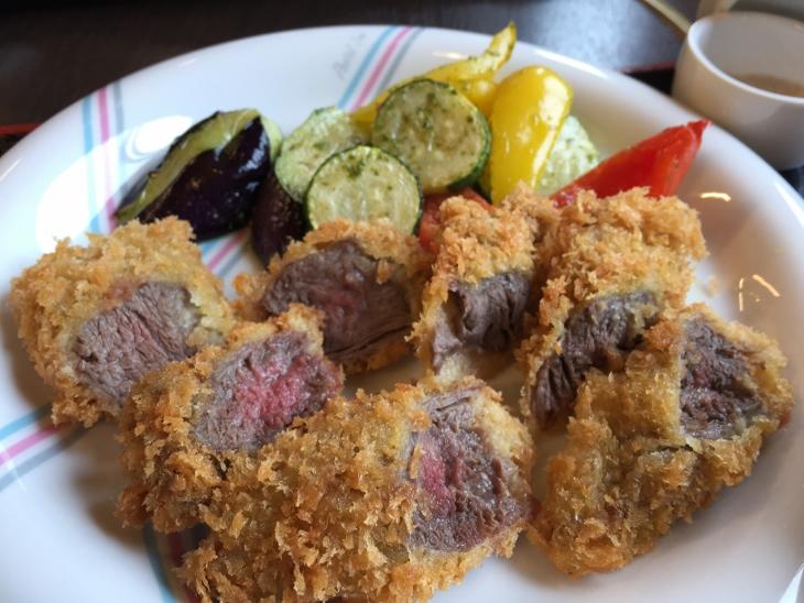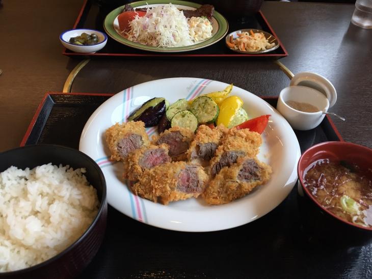 えごま豚を食べるつもりで行ったのですが、7月限定の日高見牛のカツが目に入り(限定に弱い)日高見牛を食べました。