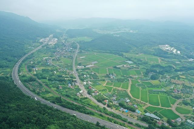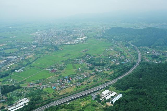 高速道路やJRの在来線は、厚樫山の麓を大きく巻いています。