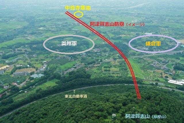 なお、山名表記は「厚樫山」と「阿津賀志山」、ふたつあります。