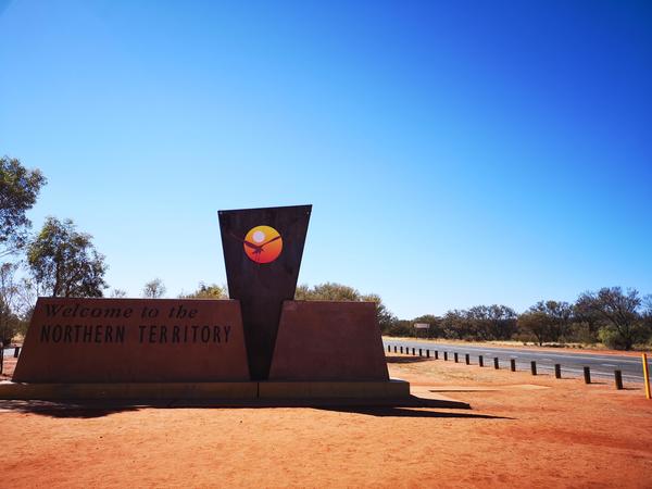 ↓オーストラリアの各州の境は、こんな感じにサインが置かれています(これは南オーストラリアからノーザンテリトリーに入る際のサイン)