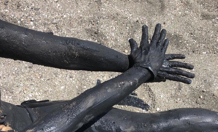 けれど意を決して体全体に黒い泥を塗るたくります。