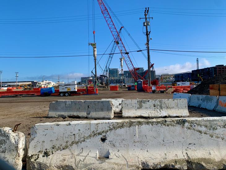 テリー・フランソワ通り(Terry A Francois BLVD)を挟んで、チャイナベイズンパーク(China Basin Park)や駐車場、シルク・ド・ソレイユ(2020年6月経営破綻)も例年ここでテント張ってました。再開発の一大工事の現場です。