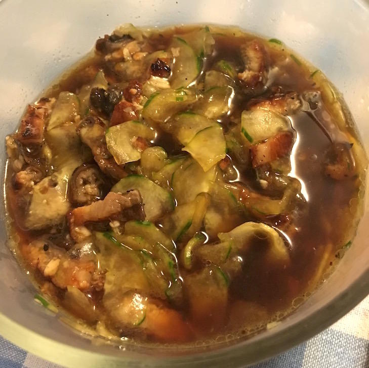 1回目の土用の丑の日は、うな丼とうざく。真空パックでも柔らかくて美味。特にうなぎの端っこを使ったうざくは、酢の物がすっきりさせてくれ、たいへん気に入りました。私は料理が得意ではないので、主人が作りました。