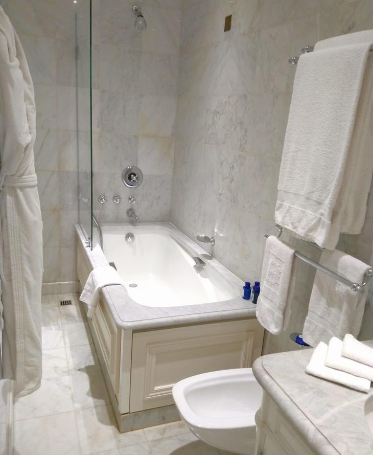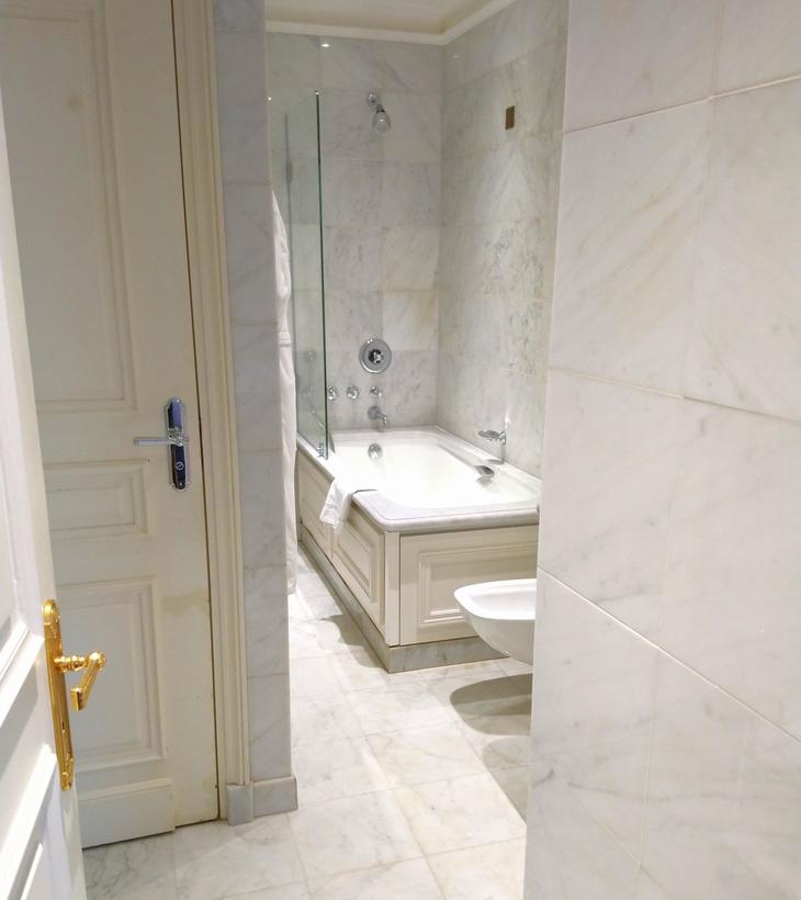 清潔で広いバスタブ。トイレは写真左に見えるドアです。