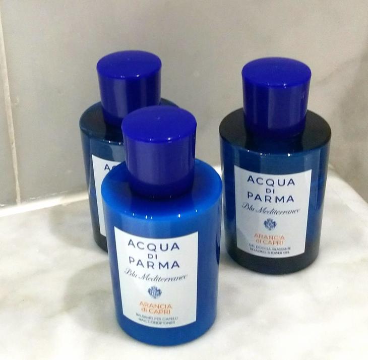 上質なバスローブとタオル。アメニティはACQUA DI PARMA アクア・ディ・パルマ です。
