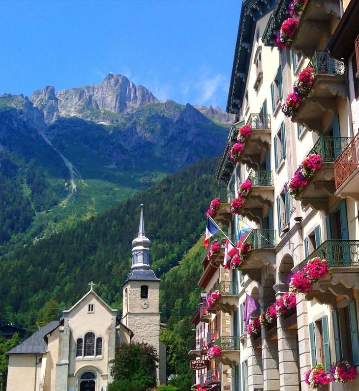 その名の通りモンブランは白く、雪に覆われていますが、麓の町、7月のシャモニーは夏服です。登山はしなくても、夜は冷え込むことがあるので夏でもジャケットなど、羽織るものを持って行った方がよいでしょう。