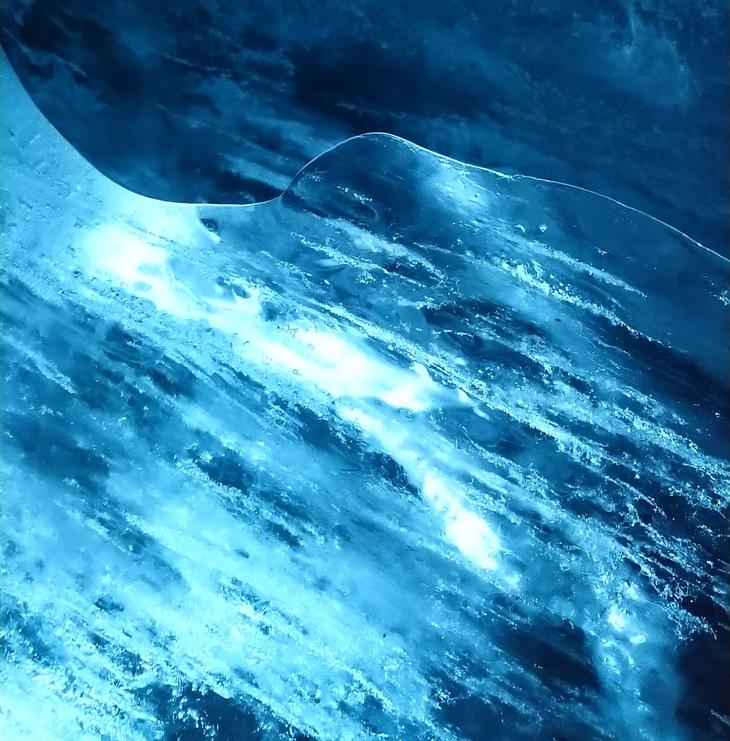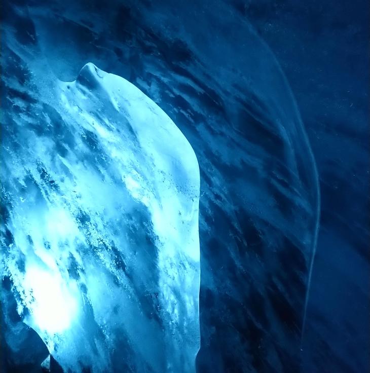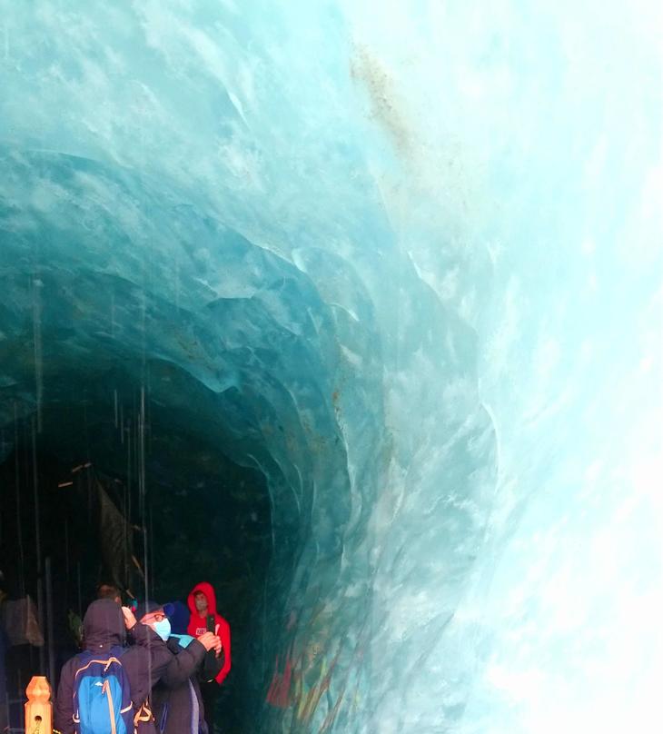 氷河を観ながらドンドン階段を降りて「氷の洞窟」へ。