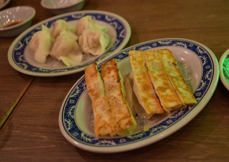 こちらが名物の棒焼餃子と水餃子。棒焼餃子はパリッと、水餃子はモチッと、ひとつのサイズはそんなに大きくありませんのでペロッといけます。ニンニク不使用ですので、ランチでも問題なしです。ほかにスープ餃子が2種類あります。
