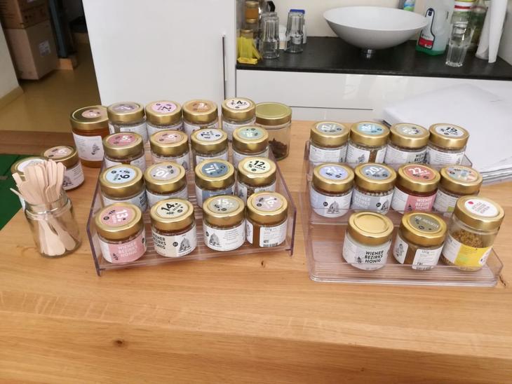 こちらがウィーン23区の蜂蜜たち。気になる蜂蜜は試食もできます。こんなにたくさんの種類、きっとくまのプーさんも試したことはないですね^^