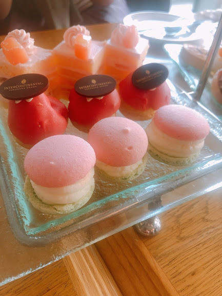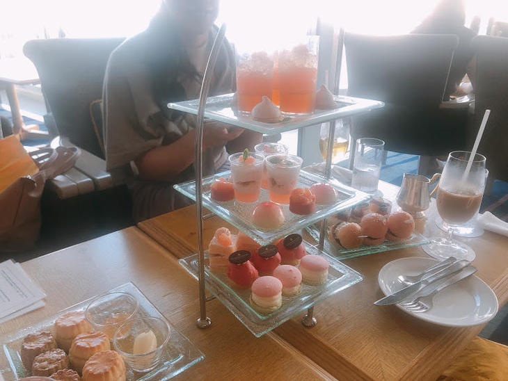 スコーンやケーキなどのスイーツはもちろん、ミニバーガーやチーズとトマトのジュレなどもあり、彩りも味も豊かで飽きません。