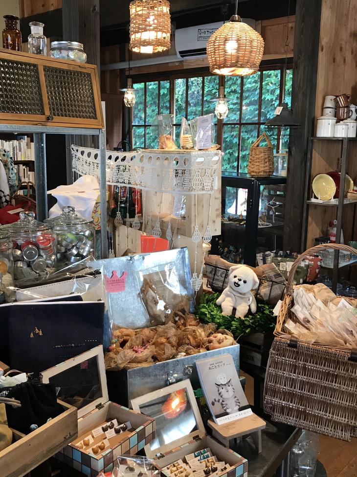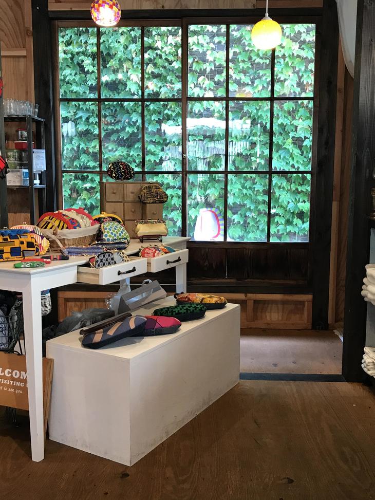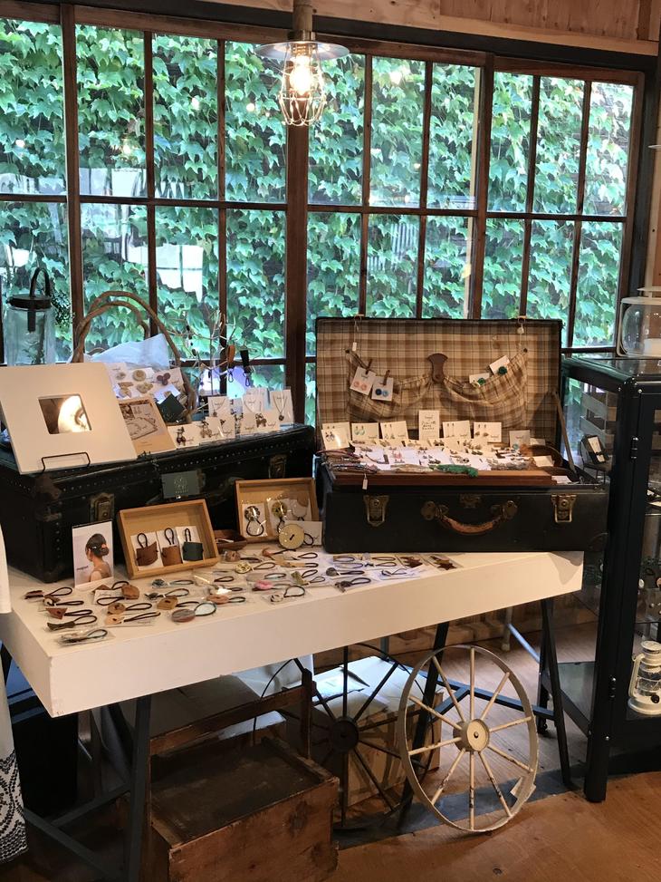 オサレにアクセサリーなどをディスプレイした後ろの木枠ガラス越しの青々とした蔦が印象的でした。