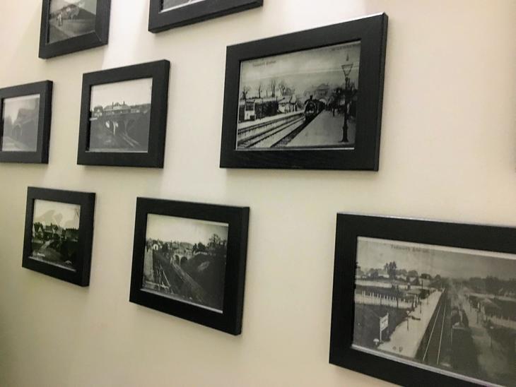 今回利用した「The Bridge」も好例で、こちらの建物はもともと駅公舎内の発券売り場を改装してレストランにしたものです。また、レストラン名になりロゴマークからもわかるように、このレストランは橋の上に建てられ、すぐ真下を線路が走っているのもユニークです。店内の壁には、昔の駅舎や線路のモノクロ写真が多数飾られていました。