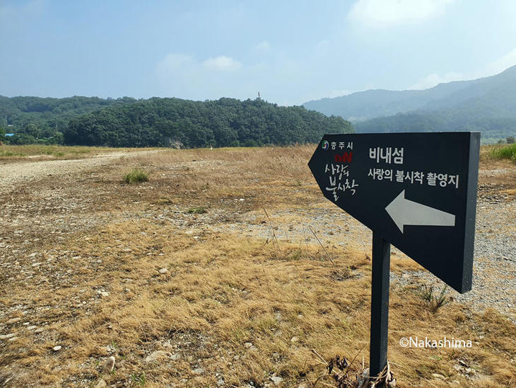 入口から入っていくと、愛の不時着ロケ地と書いてある自転車シーンの看板がかけてあり、すぐ探せます。