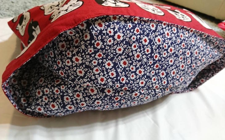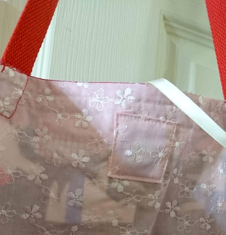 バッグの裏側は、ピンクのコットンレース生地で、そのギャップもおもしろいですね。