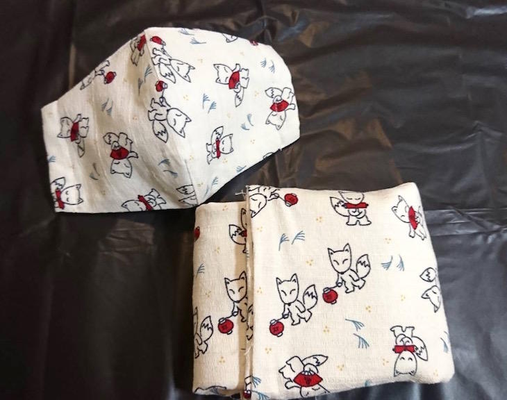 ニューヨーク在住日本人手芸作家Hirokoさんのハンドメイドのマスクとエコバッグ。価格は、セットで$30(アメリカ国内のみ、送料別)。希望者はこちらまで。残念ながら日本には郵送していませんが、アメリカにお住いの方はぜひどうぞ。