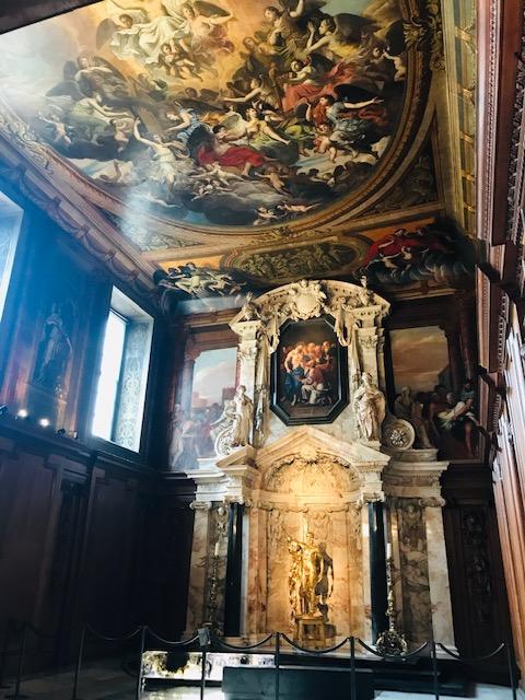 ▲ 豪華な大理石と天井画で装飾されたチャペル(礼拝堂)は現在も洗礼式などで使われている