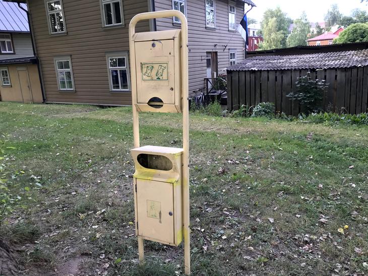 なんと、犬の●●●の処理用ビニール袋付きゴミ箱だったのです。