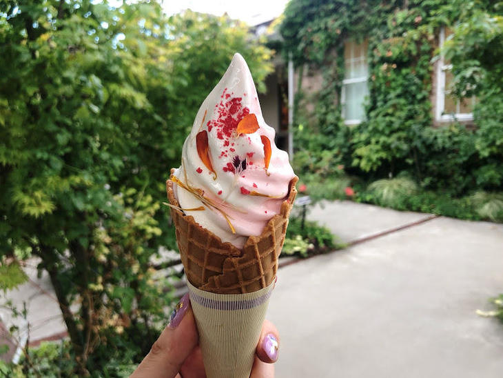 わたしはバラとバニラのソフトクリーム(500円)を注文しました。
