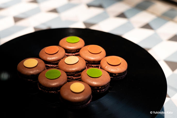 この時代の音楽のエネルギッシュで陽気、踊るように軽やかな音楽の雰囲気を、カカオの風味引き立つ魅力的なビュッシュとして表現されています。 ペルー産カカオのチョコレートムースと小麦粉不使用のビスキュイショコラ、ピスタチオ風味のチョコレートの組合せです。ビュッシュを覆うタブレット型のチョコレートとレコードが心浮き立つクリスマスを演出してくれます。