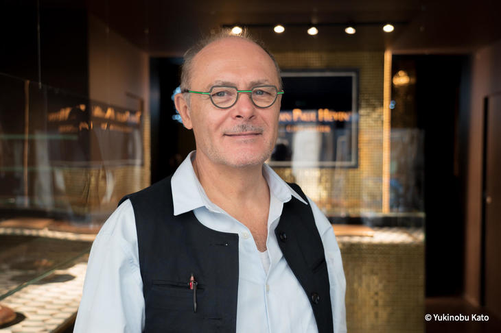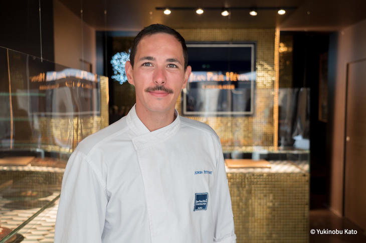 ジャン=ポール・エヴァンでは、エヴァンさんが方向性を決め、チームでクリエーションを形作っていきます。同ブランドでシェフパティシエを務めるのがアドリアン・プティジュネさんです。こんにちは!