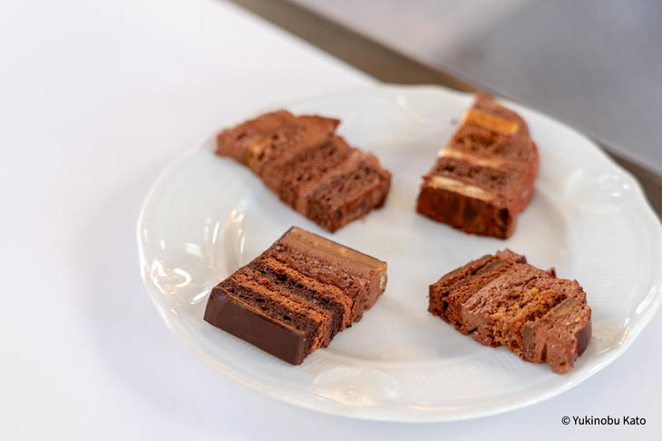プティジュネさんに、今季の商品の中でも個人的なおすすめを聞いてみました。すると「ビュッシュ・ヴィクトール」との答えが。特に、マンゴーとバジルのクレームブリュレ部分の調和がよく、気に入っているそうです。