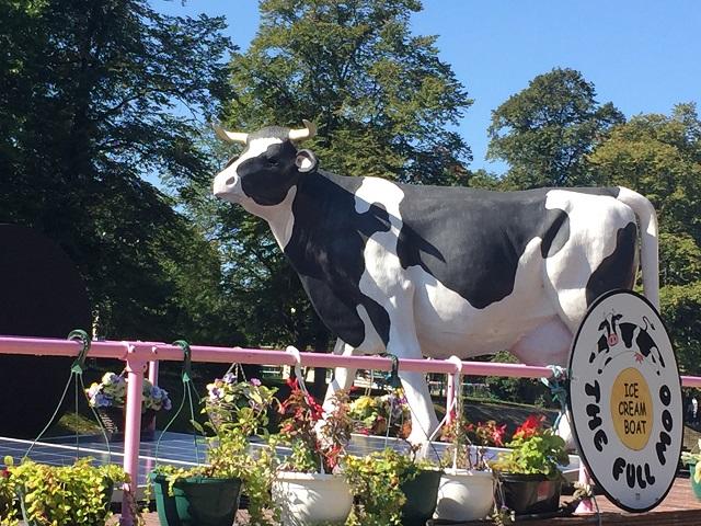 そのお店は、この実物大の牛が目印! 「ザ・フル・ムー(The Full Moo)」という店名のアイスクリーム屋さんボートで、地元ヨークシャー産のクリームをふんだんに使った濃厚なアイスクリームが人気です。