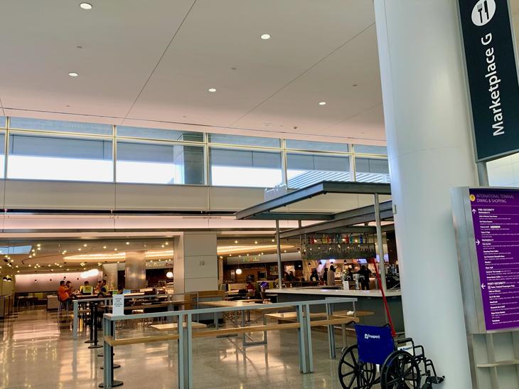 ANA/UAなどスターアライアンス側のG。レストラン、カフェは開いてるもののスタッフや作業している人達ばかりでした。航空会社が、空港利用者向けに食事はできるだけ自宅でとってくることを勧めている為かもしれません。(オープンしていなければ食事の場所がなくなるのでという理由です)