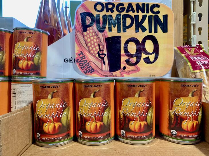 オーガニックのパンプキンピュレが$1.99! パンプキンパイにはもちろん、おだしでのばして料理の付け合わせやソースにも使える便利もの