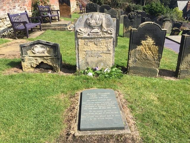 これはセント・メアリーズ・チャーチ(聖マリア教会)。教会そのものを見ても、14世紀に建てられただけあって威厳に満ちているのですが……ここはブロンテ姉妹の末っ子、アン・ブロンテのお墓があることで有名なんですよ。
