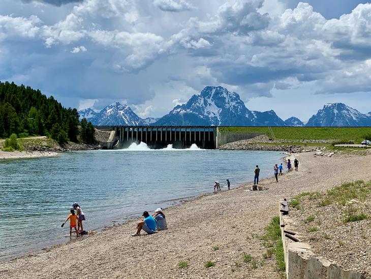 公園内に私有地がある珍しいケース。このジャクソンレイクダム(Jackson Lake Dam)は、国立公園に指定される前にできたものだそうです。地質調査研究所の観測小屋もあったり、夏の暑い時期だったので水遊びで訪れる人がけっこういました。