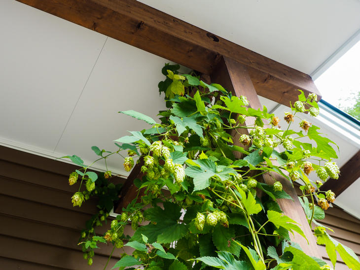 冒頭の写真でも見ていただけますが、「リスの家」の玄関ポーチにはホップが実っています!