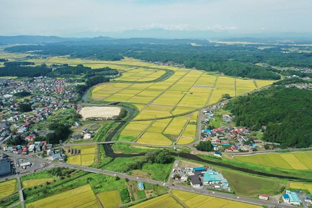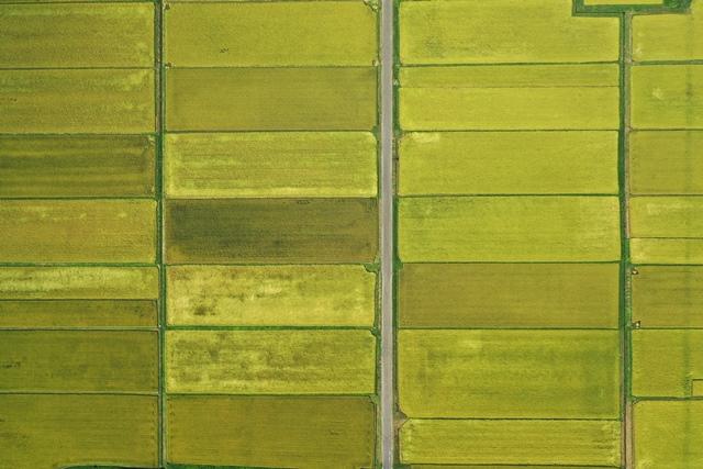 黄金色の稲穂が一面に広がっています。