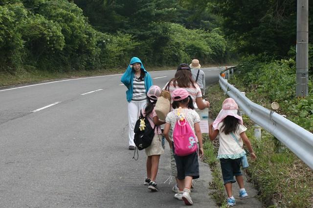 今回は4歳児も一緒に歩くというので、30分ほど遅れて出発する車チームに途中、拾ってもらうため車道を歩きます。