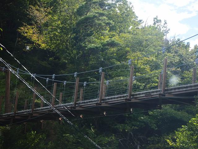 吊り橋が見えてきました。山のなかの遊歩道を歩くとこの吊り橋を渡るようになります。