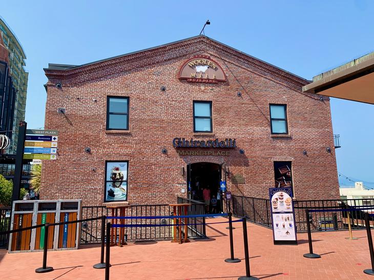 フィッシャーマンズワーフの観光名所、ギラデリスクエア。お土産として有名な『ギラデリチョコレート(Ghirardelli Chocolate)』は、ハローウィン限定版も出始めました。