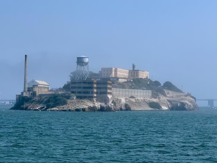 ▲ゴールデンゲート海峡から見るアルカトラズ島