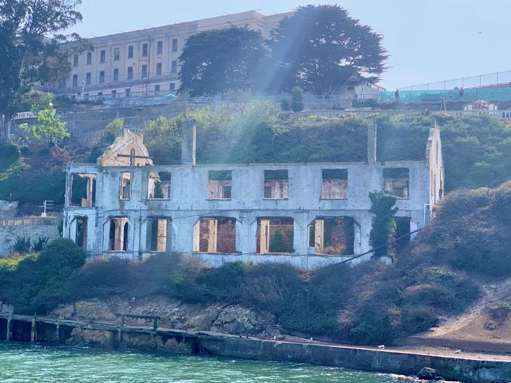 島を半周して帰港地ピア39に戻ります。『KEEP OUT』の大きな看板が見えますが、コロナ前には無かったサインです。島内は現在"アウトドアツアー(Outdoor Tours)"として刑務所の外側を巡るツアーが催行されています。それに伴い島内は景観を損ねることなく整備されています。