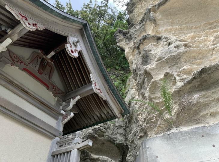 ▲荒々しい岩の隙間にすっぽりと建物が収まっているように見えます。