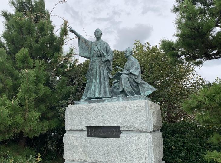 ▲公園には、吉田松陰と金子重輔の銅像があります。