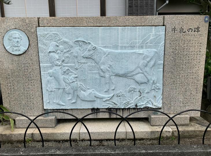 ▲乳牛の碑:日本で初めて「牛乳」が伝えられた場所としても有名ですね。