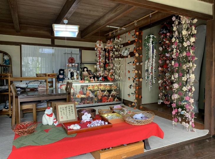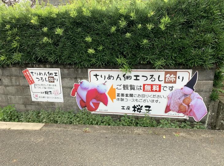 ▲帰りに階段を下りていると、正面の壁に「つるし飾り」の看板があります。