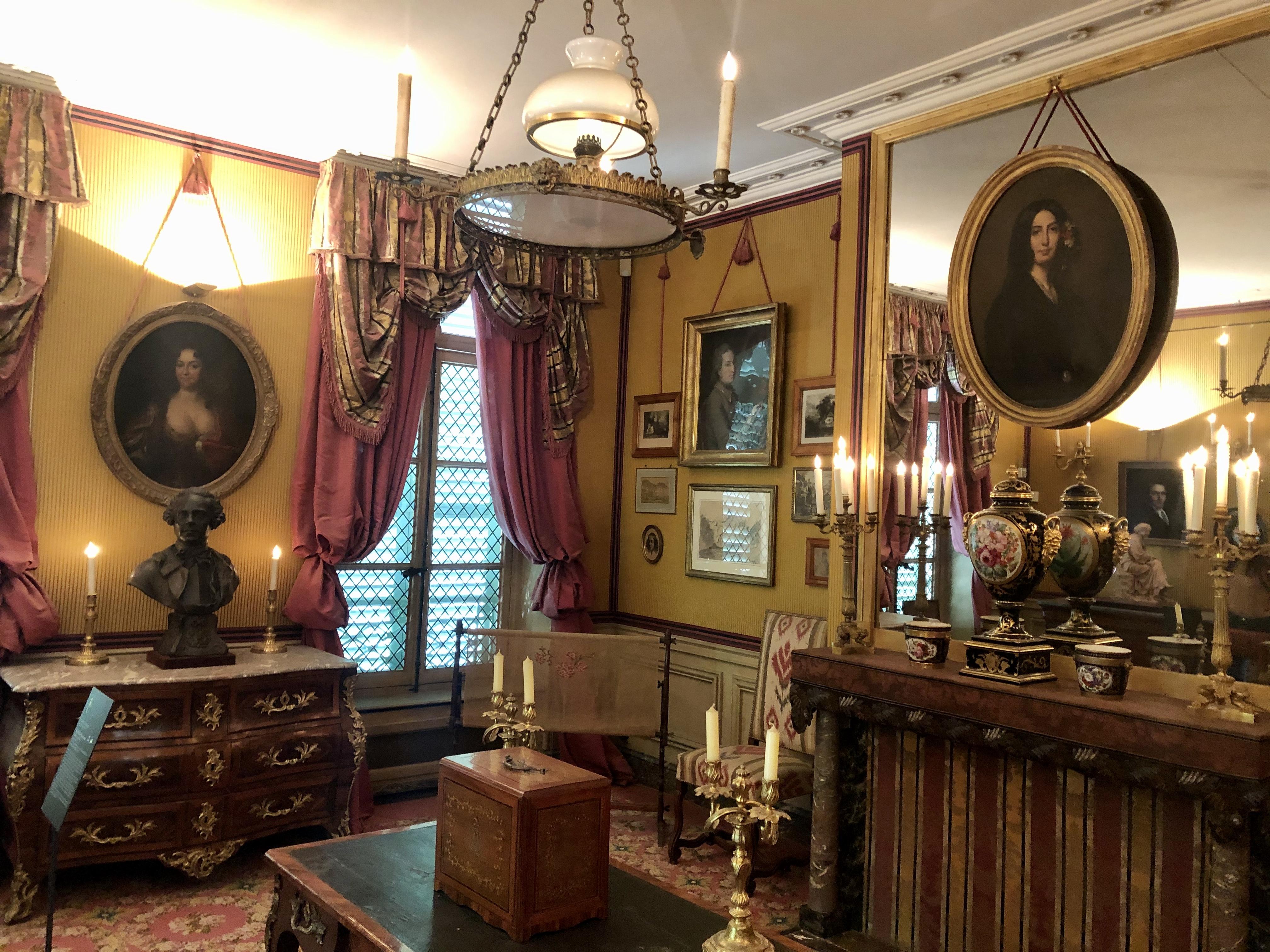 邸宅の一階にはここで過ごしたジョルジュ・サンドGeorge Sandの間があります。お孫さんから寄贈された、実際に使っていた家具や作品が飾られており、当時の暮らしを彷彿とさせます。暖炉の上には友人だった画家オーギュスト・シャルパンティエによる肖像画が飾られています。