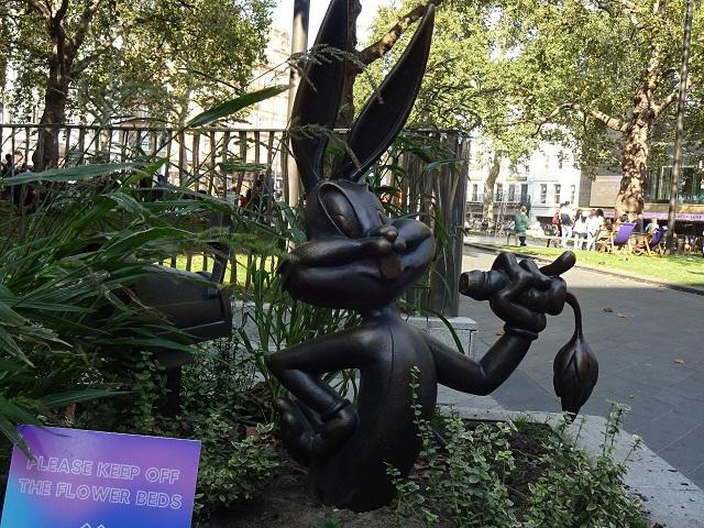 ところでこの公園には以前より、喜劇映画で人気を博したチャーリー・チャップリンの像と、劇作家ウィリアム・シェイクスピアの像があります。それら2体は期間限定ではありませんが、「シーンズ・イン・ザ・スクエア」のほうは2023年7月1日までの予定。