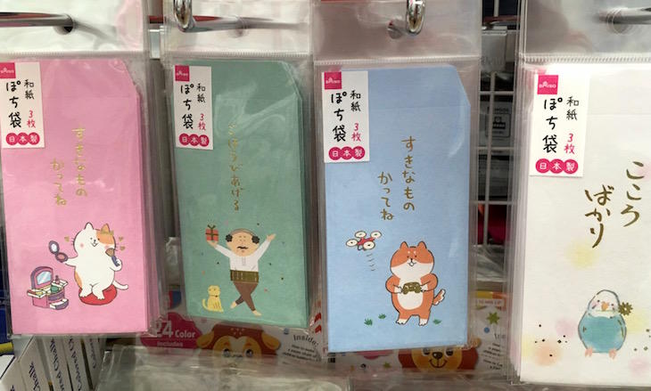 アメリカ人に使い方がわかるのか謎のポチ袋。キャッチコピーやイラストも秀逸。中国や韓国は同様の習慣があるので、アジア系にはわかりそうです。買おうか迷ったけど、3枚で$2は高いっ! 自分で買うよりは、お金が入っているポチ袋をもらいたいのが本音(笑)。