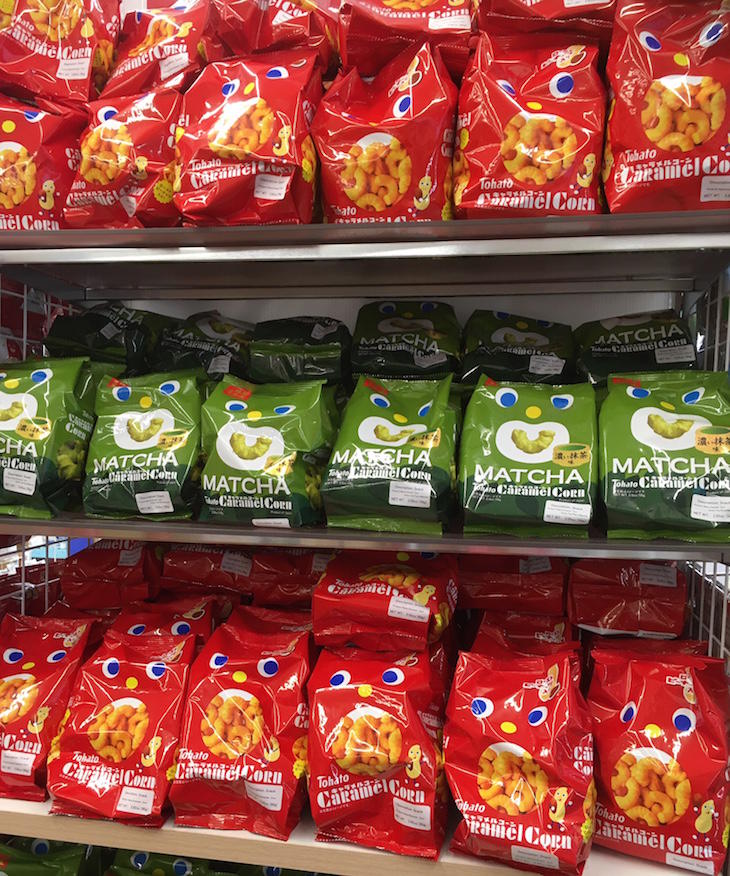 テンションが上がる、大好きなキャラメルコーン。人気があるのか、棚まるまるすべてキャラメルコーンでした。